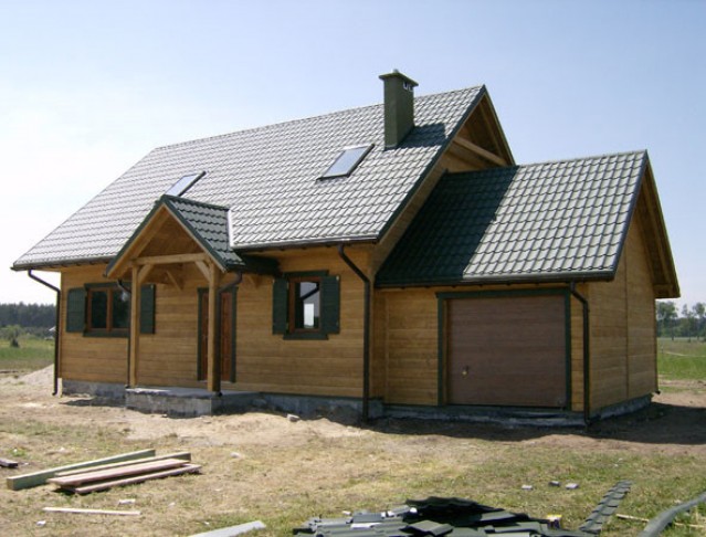 Parterowy dom mieszkalny jednorodzinny, z poddaszem użytkowym. Niedrogi w wybudowaniu oraz w utrzymaniu, bardzo energooszczędny i ekologiczny. Dom mieszkalny z drewna jest wykonany w konstrukcji szkieletowej opartej na starych zasadach Ciesielstwa tj. każdy szczegół połączenia oprócz łącznika metalowego jest połączony ze sobą połączeniem ciesielskim.
