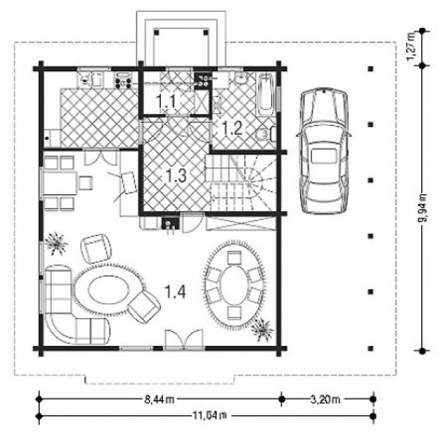 Parterowy dom mieszkalny jednorodzinny, z poddaszem użytkowym. Niedrogi w wybudowaniu oraz w utrzymaniu oraz bardzo energooszczędny i ekologiczny. Dom mieszkalny z drewna jest wykonane w konstrukcji szkieletowej opartej na starych zasadach Ciesielstwa tj. każdy szczegół połączenia oprócz łącznika metalowego jest połączony ze sobą połączeniem ciesielskim.