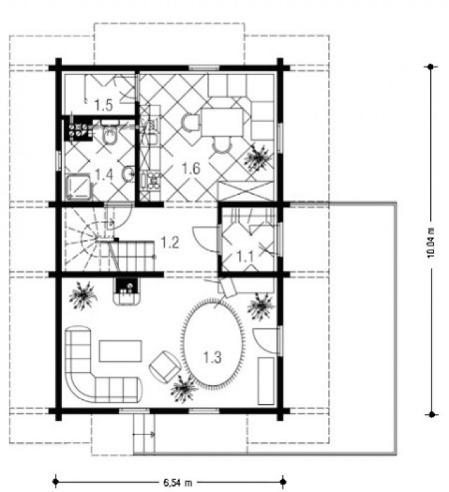 Parterowy dom mieszkalny jednorodzinny, z poddaszem użytkowym. Niedrogi w wybudowaniu oraz w utrzymaniu oraz bardzo energooszczędny i ekologiczny. Dom mieszkalny z drewna jest wykonane w konstrukcji szkieletowej opartej na starych zasadach Ciesielstwa tj. każdy szczegół połączenia oprócz łącznika metalowego jest połączony ze sobą połączeniem ciesielskim.