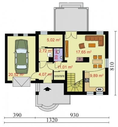 | 9,30 x 8,10 = 75,33 m2 piętro |