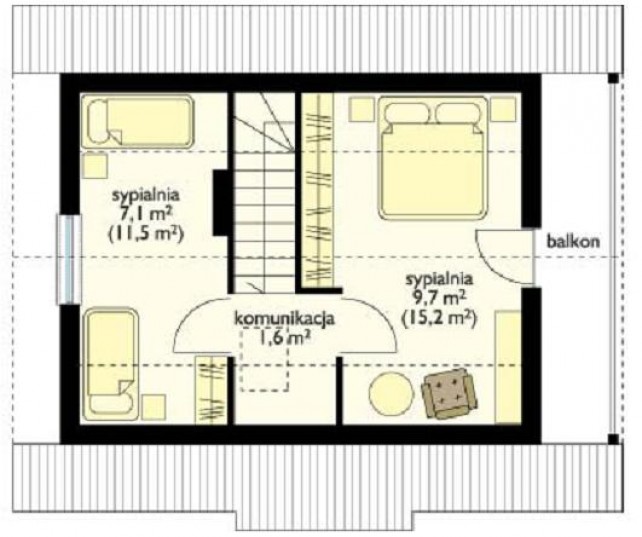 Typ: Dom mieszkalny, jednorodzinny, parterowy z poddaszem mieszkalnym